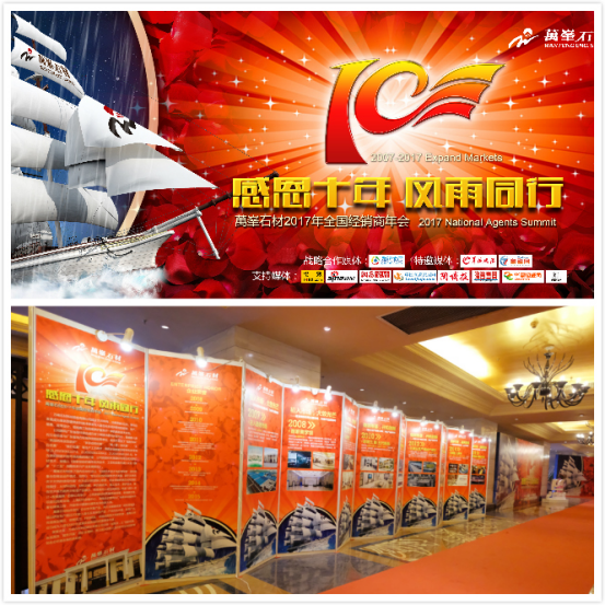 12月19日,“感恩十年,风雨同行”石材2017年全国经销商年会在顺德喜来登酒店隆重召开,万峰石材科技股份有限公司总经理林志伟、营销总经理张洪斌、渠道事业部总经理苏光谱以及来自全国数百家经销商齐聚一堂,共续十年友谊,共商发展大计!